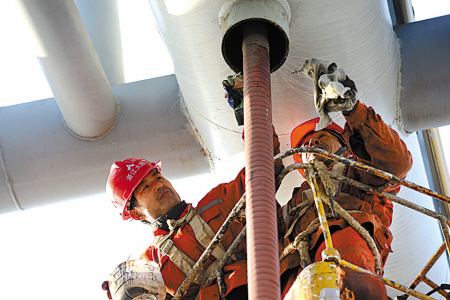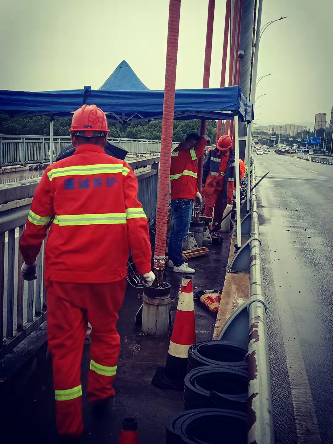2021年10月,市政橋梁養(yǎng)護單位對寧波鄞州大橋吊桿錨具防水防腐進行施工。本次針對吊桿錨具防水防腐,采用了株洲市完全科技有限公司生產(chǎn)的充氣型斜拉索導(dǎo)管防水裝置。在這種新型防水裝置安裝施工過程中,大橋業(yè)主單位和施工監(jiān)理單位領(lǐng)導(dǎo)到達現(xiàn)場觀摩,通過仔細查看安裝過程,和安裝后的灌水測試,充分認可了充氣型斜拉索導(dǎo)管防水裝置對吊桿錨具防水防腐的有效性。