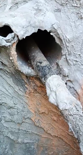 3、電纜管切割破開后預埋,導致管道縫隙滲水,并伴隨淤泥流入電纜井內。同時,因為預埋電纜管切割原因存在大小收縮,進而導致填埋不嚴實,存在電纜管道外壁縫隙滲水。