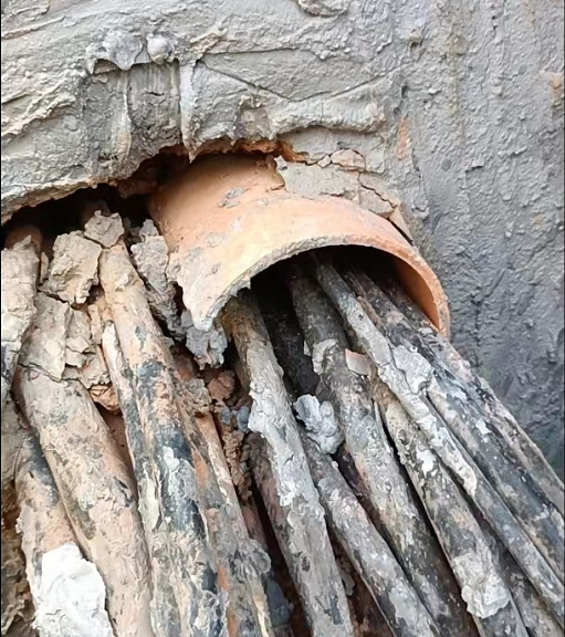 5、電纜管口出現破壞,管內電纜數量太多,塞滿整個管孔。