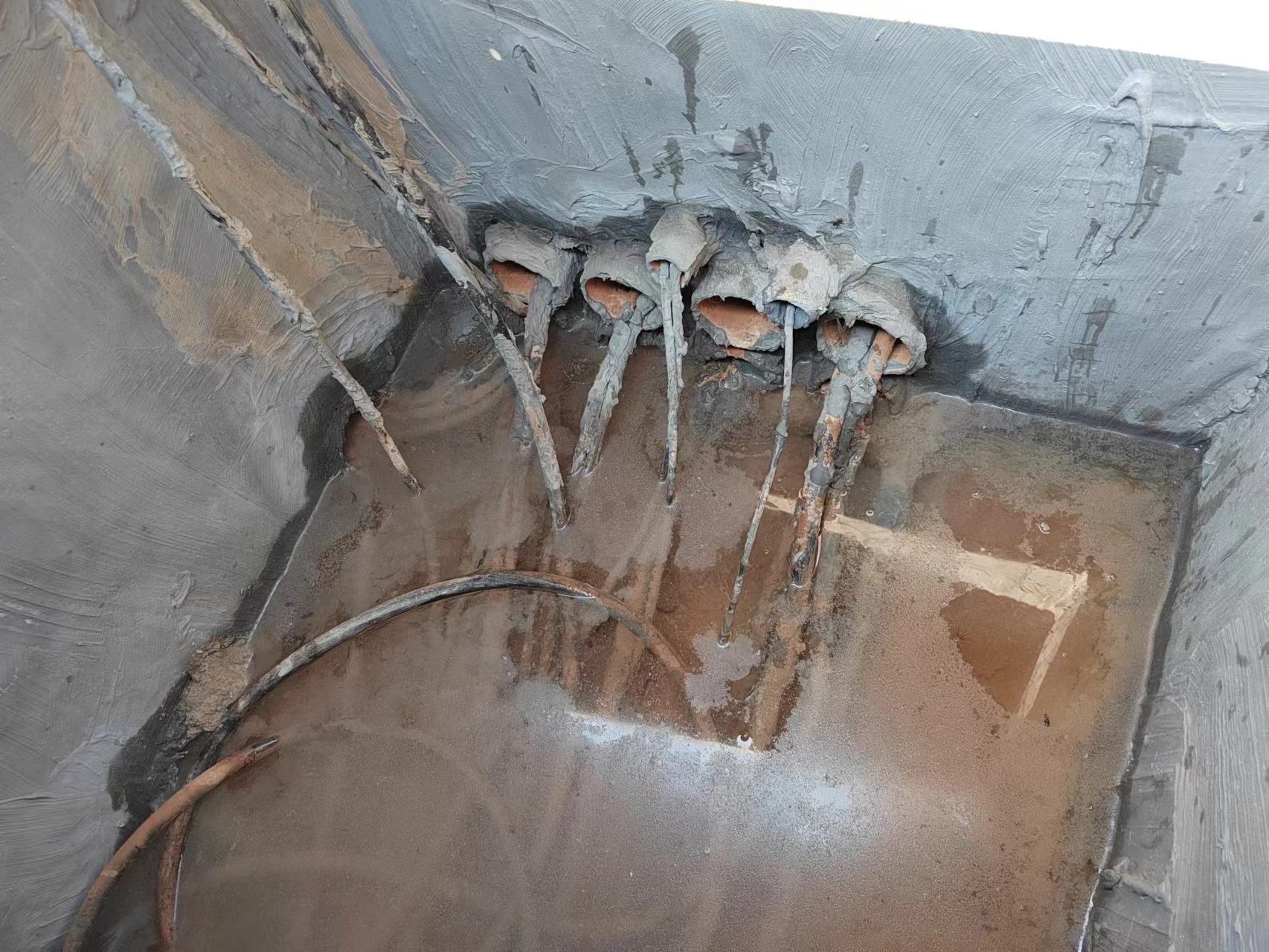 3、電纜井四面墻做過堵漏王抹灰處理,墻面滲水問題有所改善,但沒有完全解決問題。