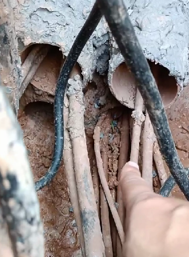 1、電纜井底部積累大量淤泥。電纜表面滿是淤泥,應該是隨電纜管流水帶出的淤泥沉積形成。