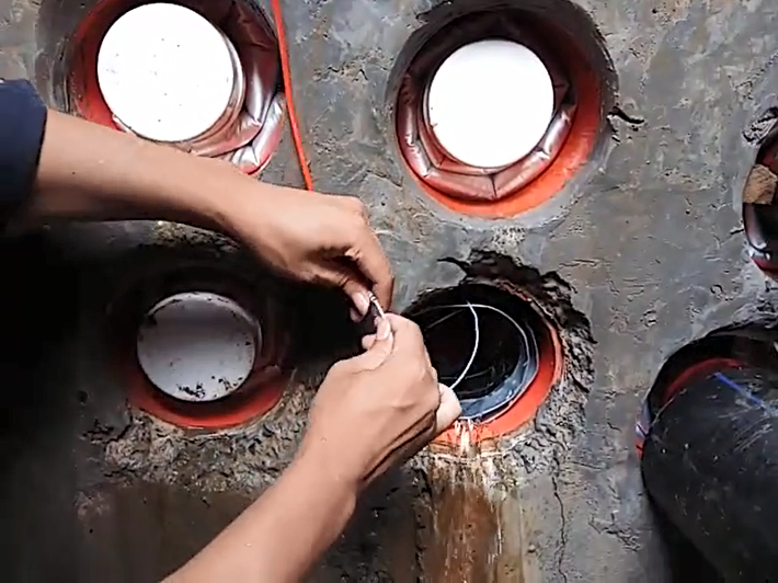 4、確認(rèn)電纜管孔安裝位置堅(jiān)硬牢固。預(yù)埋電纜管道的管孔(不含柔性軟管)和機(jī)械鉆孔的混凝土墻孔,管壁都是相對堅(jiān)硬牢固的,能夠承受密封氣囊的外擴(kuò)性氣壓膨脹。而軟管或空心隔墻一類的管孔,則不適合安裝密封氣囊。