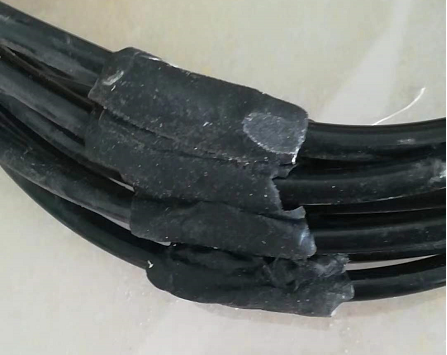 針對五根或更多電纜的夾縫密封方式:對同一段電纜部位的每一根電纜都用防水膠帶包裹一圈,整體呈現圓柱形,朝外一端延伸70mm位置用塑料扎帶扎緊(避免其中一根或幾根出現前后拉伸移動)。