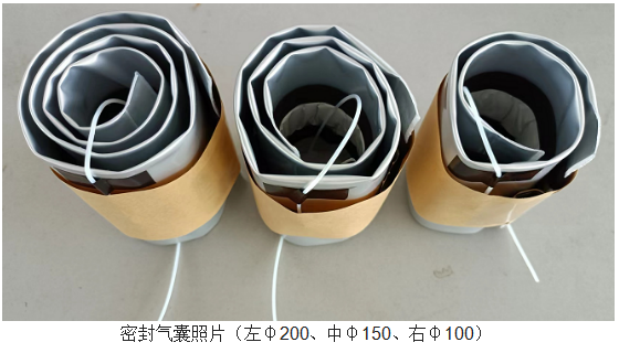 原則上按照標準電纜外徑與管道內徑比例為1:≥1.5(即管孔內徑是電纜直徑的1.5倍以上)。但在實際施工過程中,經常出現非標準施工操作。例如:內徑150的電纜管孔穿一根直徑35的電纜、內徑190的電纜管孔穿一根直徑兩根直徑10的光纖、內徑100的電纜管孔穿十幾根小電纜總直徑達到80等等。這鐘電纜管孔與內穿電纜直徑比例嚴重超標或不匹配的情況,也就導致有的電纜管孔空隙太小無法塞入密封氣囊,又或是空間太大密封氣囊膨脹密封不到位。