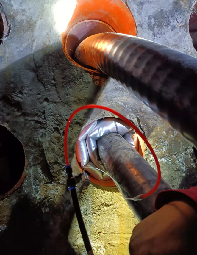 1)管線進出孔:采用柔性密封氣囊封堵管道孔洞,避免出現管道接口密封不嚴或管道破裂產生的土層滲水。